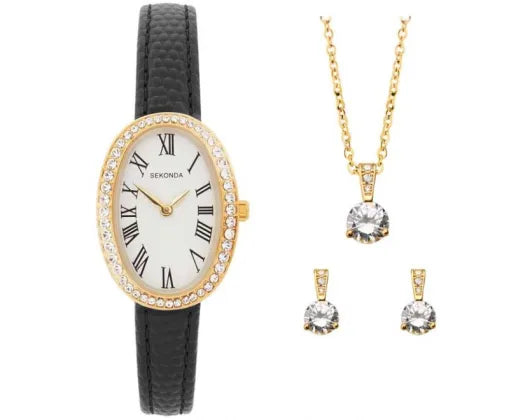 Watch Bellamy White Oval Dial Black Leather Strap 23mm with Gift Set