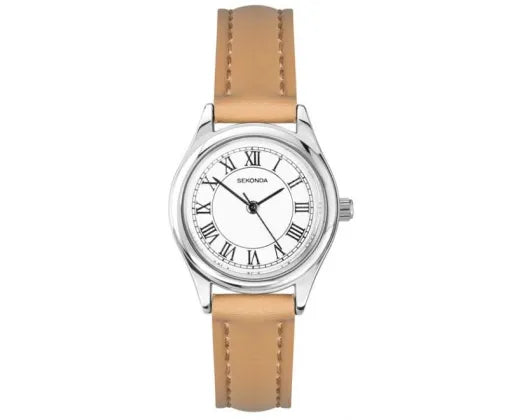 Watch Evans White Dial Silver Light Tan Leather Strap 25mm
